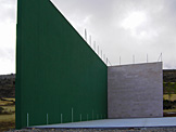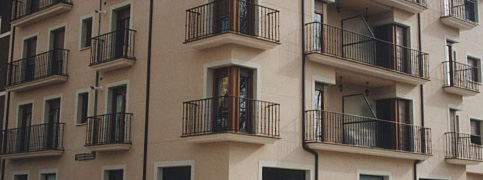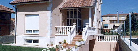 El frontón de Santa María de las Hoyas está construido con bloque relleno de hormigón y frontis de piedra natural.